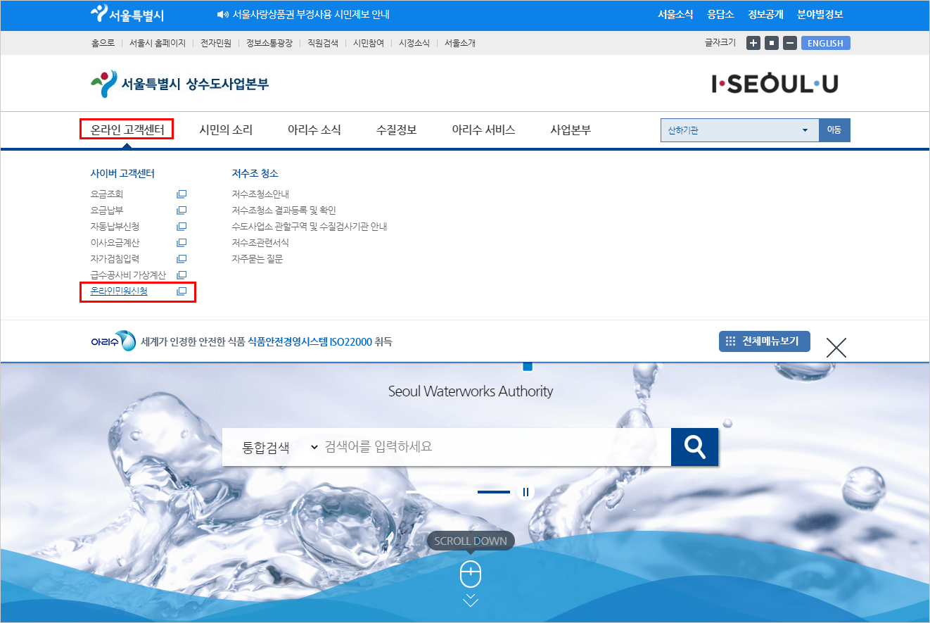 1. 서울시 상수도사업본부 웹사이트로 접속
